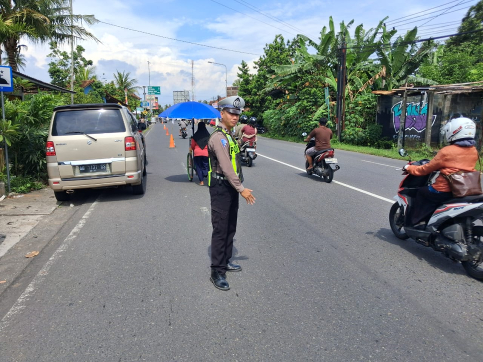 Lokasi di Jalur Padat, Polsek Srandakan Sigap Atur Lalu Lintas dan Bantu Penyeberangan di Rumah Duka Warga Trimurti