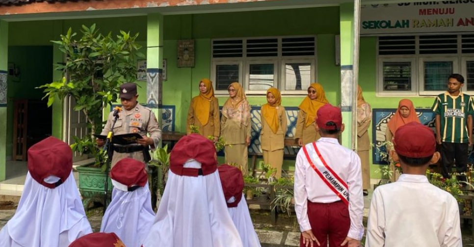 Panit Binmas Polsek Srandakan, Aiptu Ifanudin, menjadi pembina upacara bendera di SD Muhammadiyah Gerso, Srandakan, Bantul, Senin pagi.(26/1/2026).Upacara diikuti oleh kepala sekolah, para guru, serta seluruh siswa dan siswi SD Muhammadiyah Gerso.