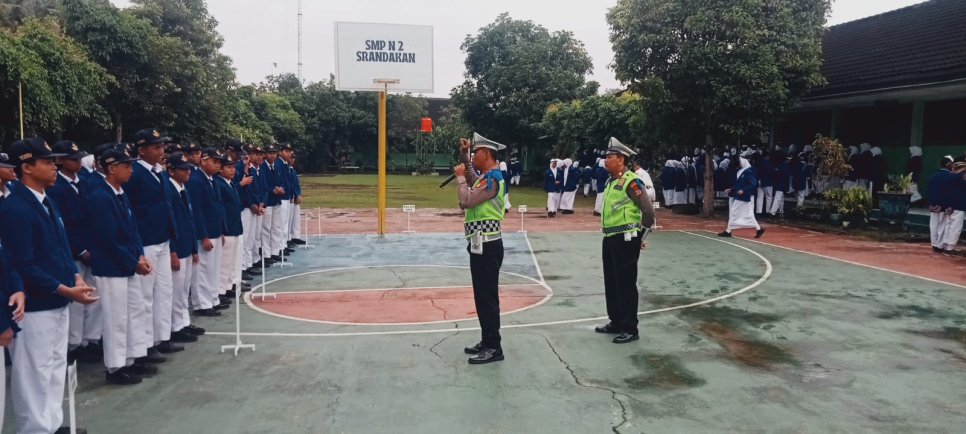 Panit Lantas Polsek Srandakan, Iptu Wiwid R, bertindak sebagai Pembina Upacara pada upacara bendera hari Senin, (9 /02/2026) yang dilaksanakan di SMP Negeri 2 Srandakan. Kegiatan tersebut dirangkaikan dengan pelaksanaan pembinaan dan penyuluhan (Binluh) kepada siswa dan siswi dalam rangka Operasi Keselamatan Progo 2026.