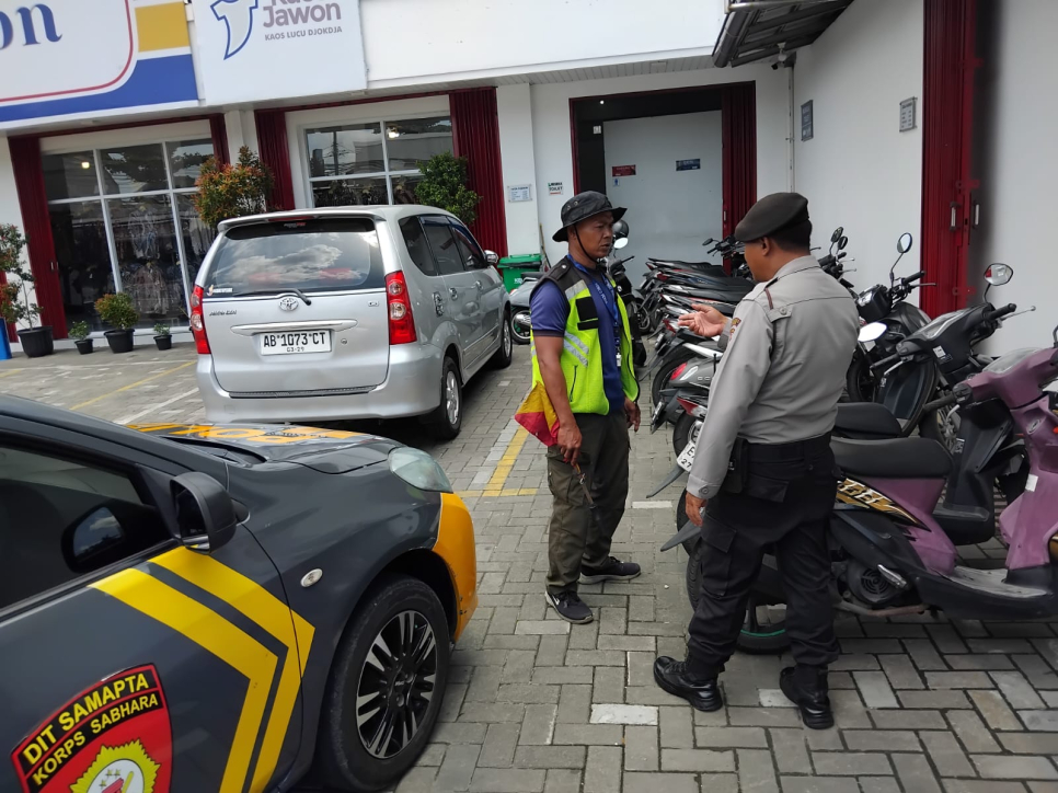 Unit Samapta Polsek Piyungan kembali melaksanakan kegiatan patroli dialogis sebagai upaya menjaga keamanan dan ketertiban masyarakat. Kali ini, personel melakukan sambang dan dialog dengan juru parkir di Toko Batik Jawon, Piyungan, Selasa (25/11/2025).Dalam kegiatan tersebut, anggota Samapta memberikan pesan-pesan kamtibmas kepada juru parkir, antara lain pentingnya menjaga ketertiban area parkir, mengatur kendaraan dengan rapi, serta meningkatkan kewaspadaan terhadap potensi tindak kejahatan seperti pencurian kendaraan bermotor.
