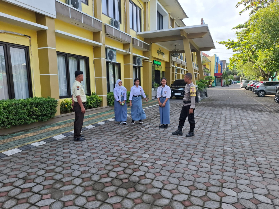 Sebagai upaya menjaga keamanan dan ketertiban masyarakat, khususnya di lingkungan pendidikan, Bhabinkamtibmas Polsek Sewon Kalurahan Pendowoharjo, Aiptu Wawan Giarto, S.Psi., melaksanakan patroli wilayah dan sambang dialogis di SMK Negeri 1 Sewon yang berlokasi di Pulutan, Kalurahan Pendowoharjo, Kapanewon Sewon, Kabupaten Bantul, Kamis, (08/01/2026).Dalam kegiatan tersebut, Aiptu Wawan Giarto berinteraksi secara santun dan humanis dengan petugas keamanan sekolah (satpam) serta para siswi. Dialog yang dibangun bertujuan untuk menjalin komunikasi yang baik, memberikan rasa aman, sekaligus menyampaikan pesan-pesan kamtibmas agar lingkungan sekolah tetap kondusif dan nyaman untuk kegiatan belajar mengajar.