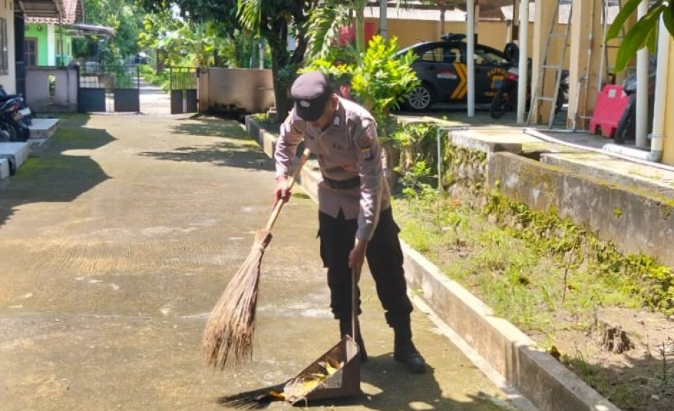 Peringati Isra Mi'raj, Polsek Srandakan Gelar Kerja Bakti Bersih-bersih Lingkungan