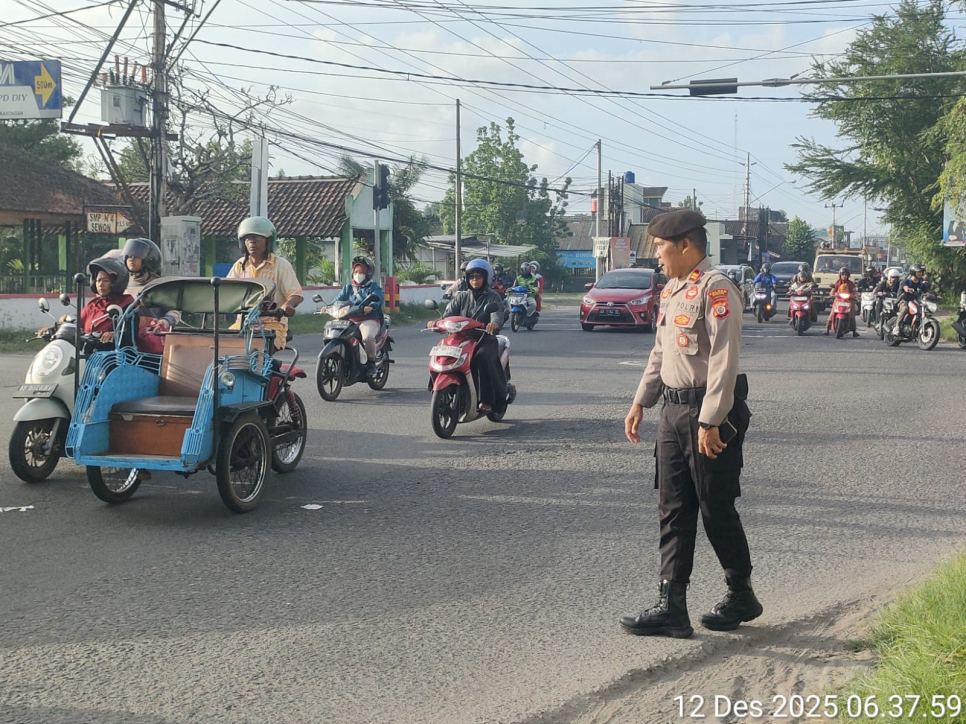 Personel Polsek Kasihan melaksanakan kegiatan rutin pos pagi sebagai bentuk pelayanan kepada masyarakat, khususnya para pengguna jalan di Simpang Kasongan, Kasihan, Bantul, Jumat (12/12/2025).Kegiatan tersebut dipimpin oleh Panit Samapta Polsek Kasihan, Iptu Sigit Budi H, dengan melakukan pengaturan arus lalu lintas serta membantu warga yang hendak menyeberang jalan. Petugas tampak sigap mengatur kendaraan yang mulai padat seiring meningkatnya aktivitas masyarakat di pagi hari.