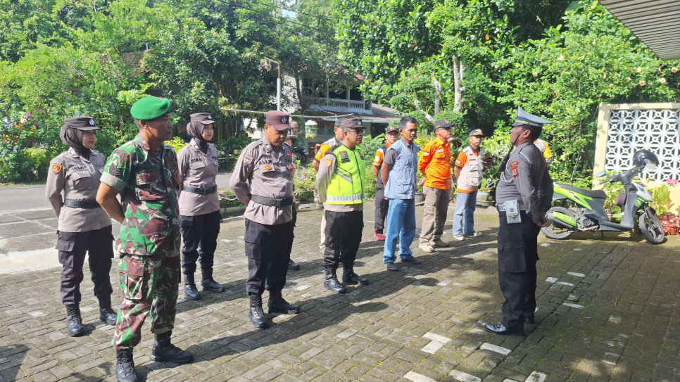 Personel Polsek Srandakan,TNI dan relawan Laksanakan Apel Persiapan PAM Perayaan Natal 2025