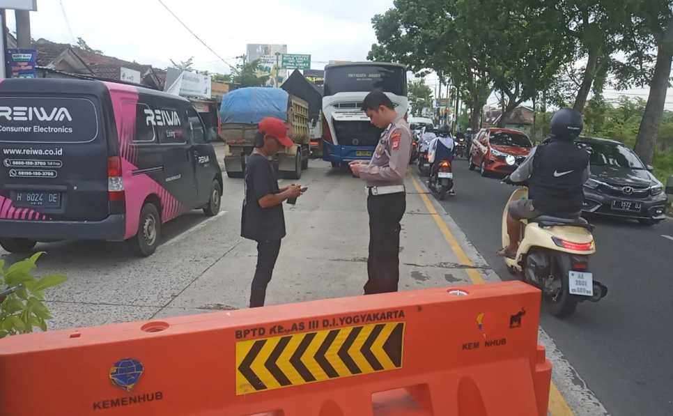 Anggota Unit Lalu Lintas Polsek Sedayu dengan sigap melakukan pengamanan terhadap sebuah bus yang mengalami mogok di Jalan Jogja-Wates, tepatnya di Klangon, Sedayu, Bantul, Kamis (4/12/2025).Setibanya di lokasi kejadian, petugas segera melakukan penanganan dengan memasang water barrier di sekeliling area bus yang mogok. Langkah cepat ini dilakukan untuk memastikan keamanan para pengendara lain yang melintas, mengingat arus lalu lintas di jalan tersebut cukup padat, terutama pada jam-jam sibuk.