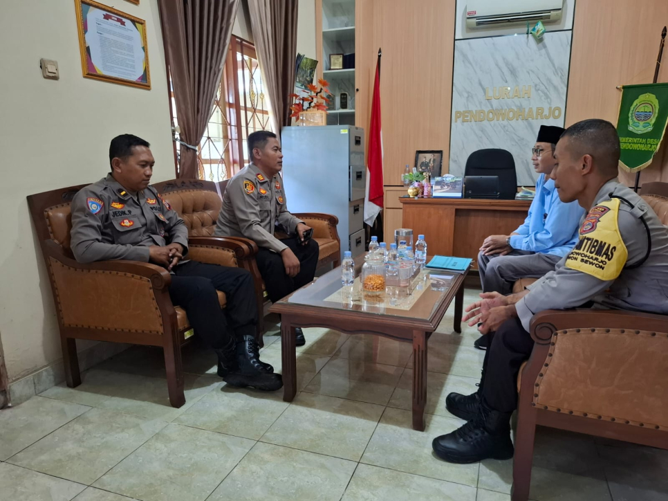 Bhabinkamtibmas Kalurahan Pendowoharjo Polsek Sewon, Aiptu Wawan Giyarto, mendampingi Plt. Kapolsek Sewon AKP Rudianto, S.H., bersama Panit Binmas Polsek Sewon, Ipda Jedik Praptowo, dalam kegiatan kunjungan silaturahmi kepada Lurah Pendowoharjo, H. Hilmi Hakimudin, S.Pd.I., pada Senin (25/11/2025). Pertemuan berlangsung di ruang Lurah Pendowoharjo.Kunjungan ini dilaksanakan dalam rangka memperkuat sinergitas antara kepolisian dan pemerintah kalurahan, sekaligus membahas kesiapan serta situasi keamanan dan ketertiban masyarakat (kamtibmas) menjelang perayaan Natal dan Tahun Baru 2026.