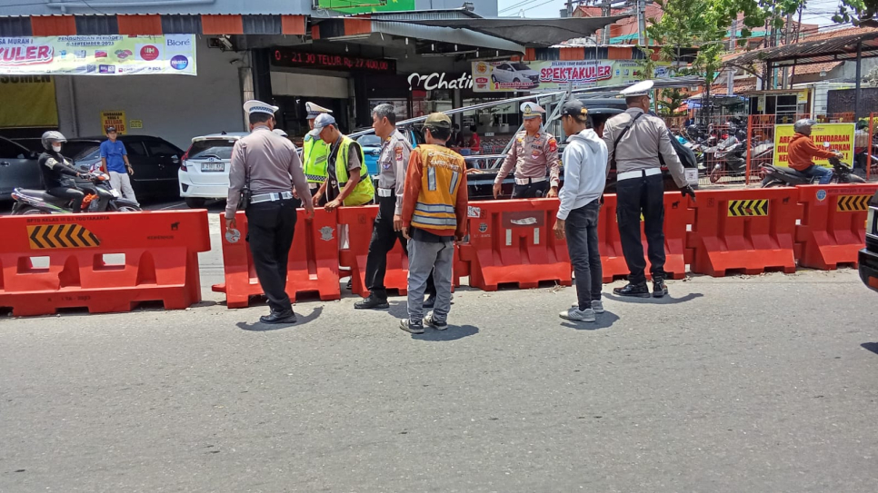 Polisi Rapikan Water Barrier di Simpang Empat Mirota Godean