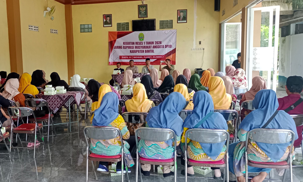 Panit Intelkam Polsek Imogiri, Ipda Suhardi, memimpi pengamanan kegiatan Reses I Tahun 2026 Anggota DPRD Kabupaten Bantul, di Wukirsari, Imogiri, Bantul, Selasa (3/2/2026).Acara ini dihadiri oleh berbagai pihak, termasuk Anggota DPRD Kabupaten Bantul, Petugas Penyuluh Lapangan (PPL) BPP Kapanewon Pleret Warjito, PPL BPP Kapanewon Imogiri Marno dan Novi, serta anggota Kelompok Wanita Tani (KWT) dari wilayah Imogiri dan Pleret.