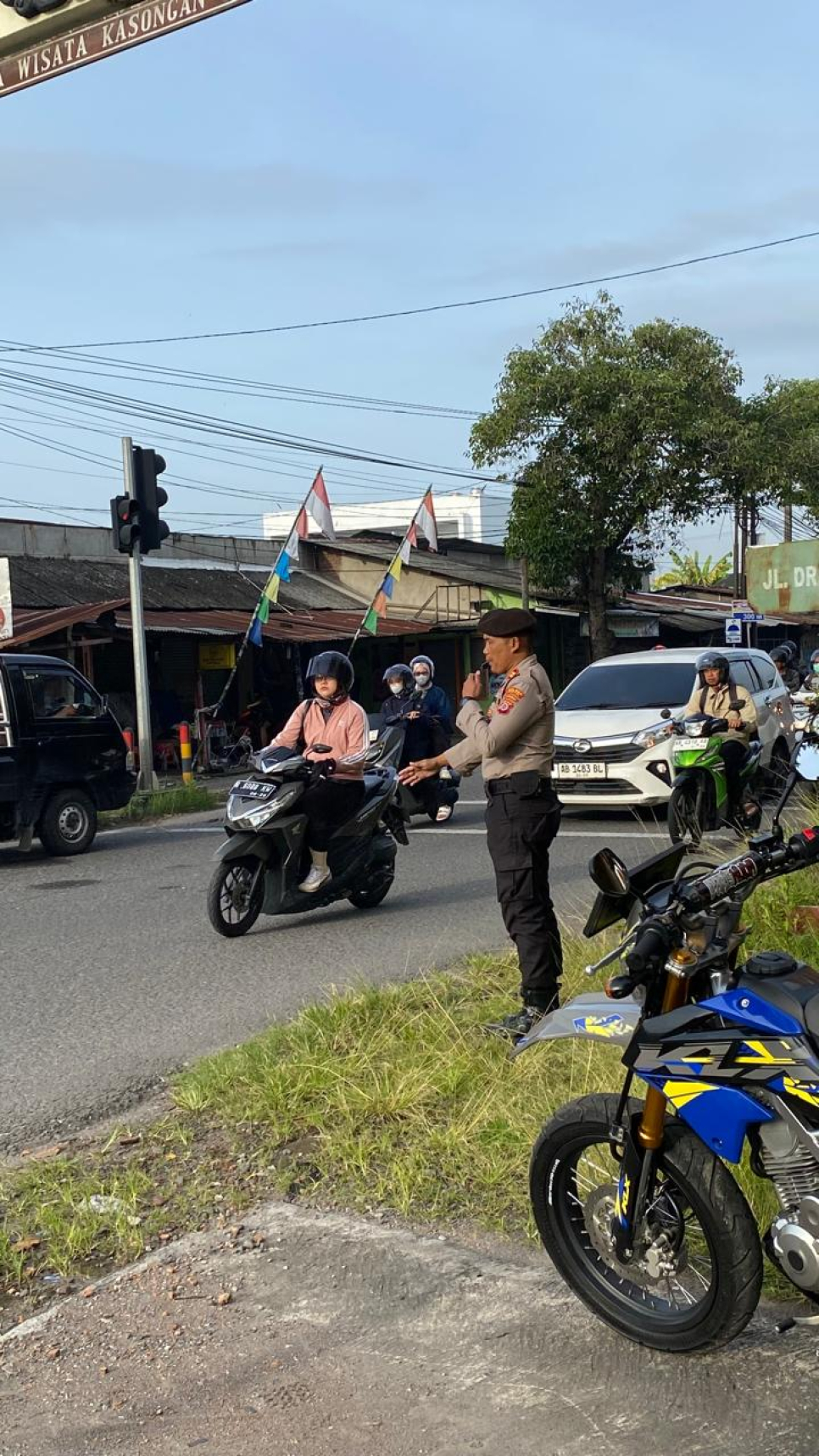Polsek Kasihan Laksanakan Pos Pagi di Simpang Empat Kasongan