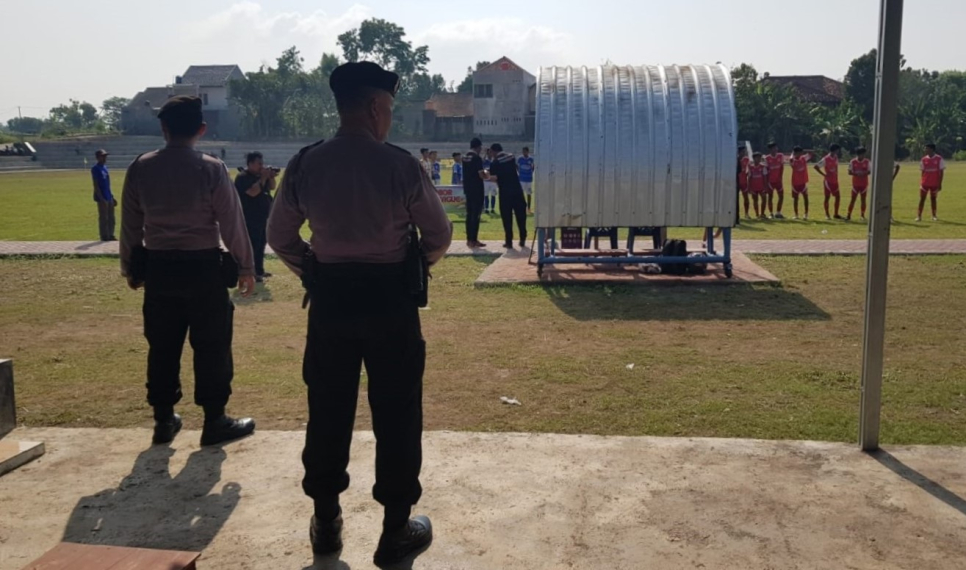 Personel Polsek Piyungan hadir untuk memastikan keamanan dan kelancaran selama pertandingan berlangsung.