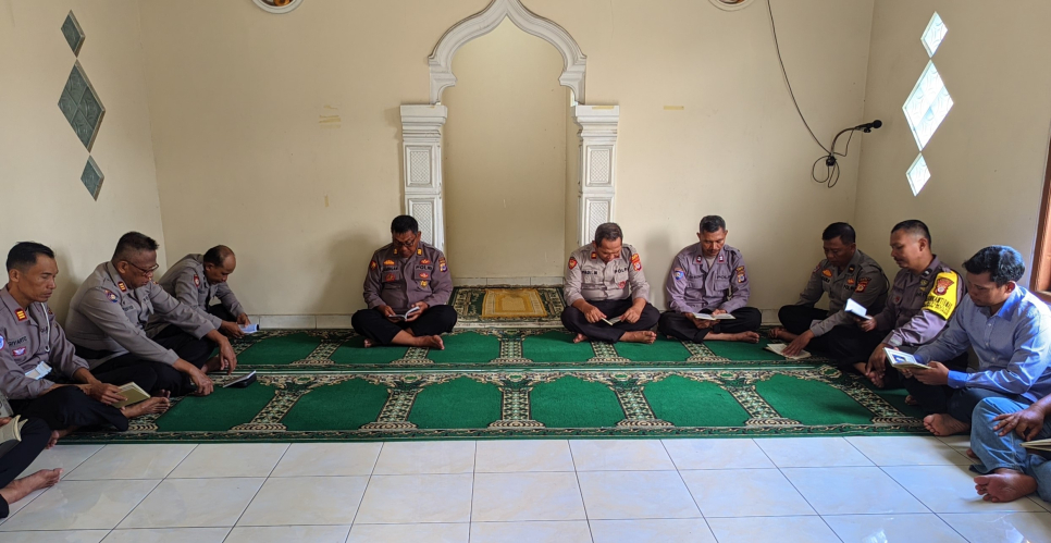 Personel Polsek Piyungan melaksanakan kegiatan Bimbingan Rohani dan Mental (Binrohtal) berupa pembacaan Surat Yasin di Mushola Polsek Piyungan, Kamis (4/12/2025).Kegiatan ini dipimpin oleh Wakapolsek Piyungan, AKP Jamingan SH.