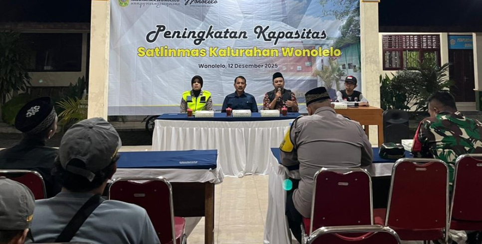 Sebagai upaya meningkatkan kesiapsiagaan dalam menghadapi potensi bencana dan gangguan keamanan, Pemerintah Kalurahan Wonolelo bersama Polsek Pleret menggelar kegiatan peningkatan kapasitas bagi anggota Satuan Perlindungan Masyarakat (Linmas) Kalurahan Wonolelo. Acara ini berlangsung di Pendopo Kalurahan Wonolelo, Pleret, Bantul, Jumat (12/12/2025).Kegiatan ini dihadiri oleh berbagai pihak, termasuk Kepala Satpol PP Kabupaten Bantul R. Jati Bayubroto SH M.Hum, Kapolsek Pleret yang diwakili Kanit Lantas Aiptu Kristinawanti, Lurah Wonolelo H. Ahmad Furqon A.Md, Carik, Bhabinkamtibmas Kalurahan Wonolelo, Babinsa, serta anggota Linmas Wonolelo.