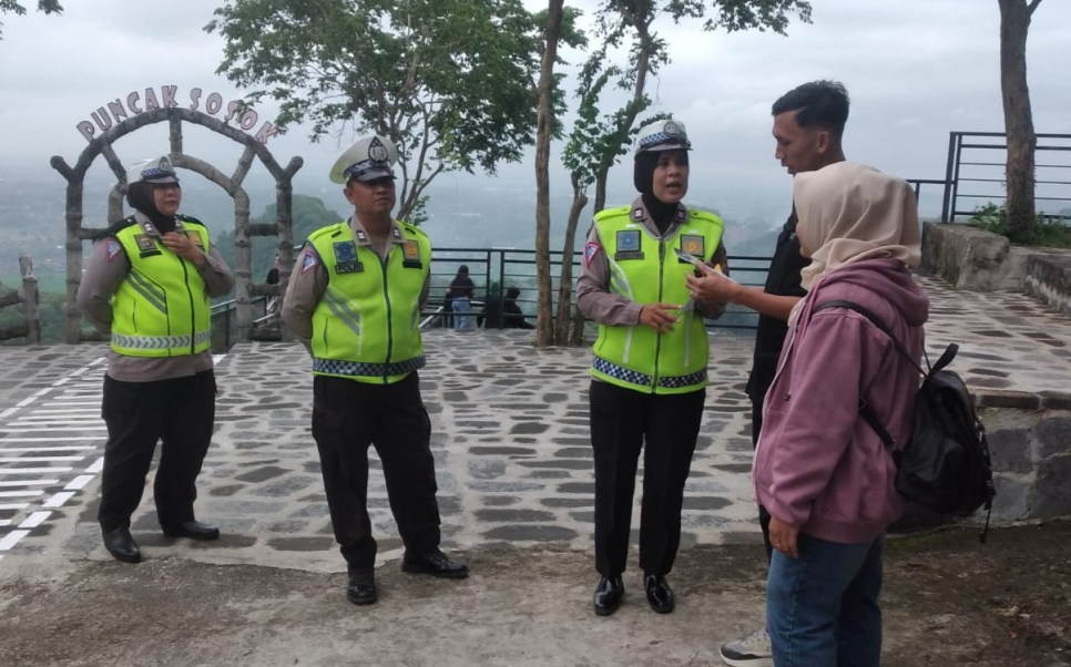 Polsek Pleret terus menggencarkan upaya peningkatan kesadaran keselamatan berlalu lintas di wilayahnya. Terbaru, kegiatan pembinaan dan penyuluhan (Binluh) menyasar wisatawan di objek wisata Puncak Sosok, Bawuran, Pleret, Bantul, Minggu (8/2/2026).Kegiatan ini merupakan bagian dari Operasi Keselamatan Progo 2026 yang bertujuan untuk menekan angka kecelakaan dan meningkatkan disiplin masyarakat dalam berlalu lintas. Puncak Sosok dipilih sebagai lokasi Binluh karena merupakan salah satu destinasi wisata populer yang banyak dikunjungi masyarakat, terutama di akhir pekan.