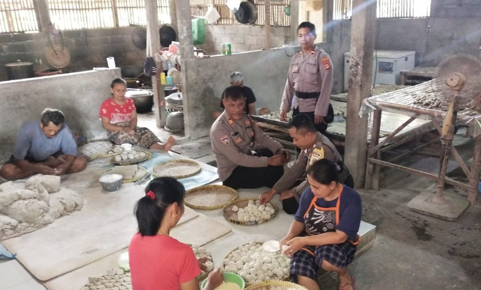 Kanit Binmas Polsek Sedayu AKP Santoso bersama anggotanya melaksanakan kegiatan sambang warga di Dusun Jaten, Argosari, Sedayu, Bantul, Rabu (21/1/2026).Dalam kegiatan tersebut, petugas menyambangi pelaku UMKM (Usaha Mikro, Kecil, dan Menengah) yang bergerak di bidang pengolahan makanan, yakni produksi empek-empek.