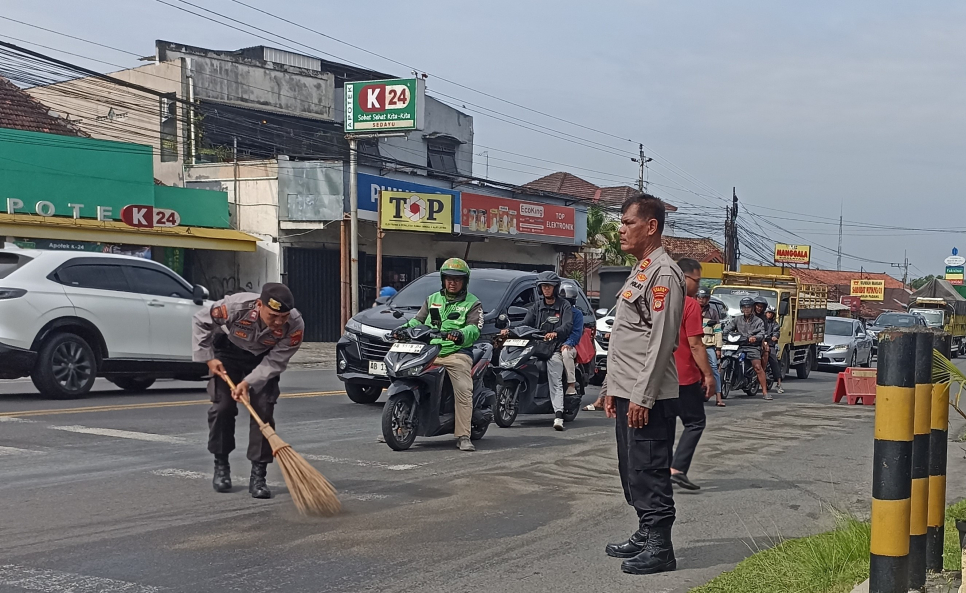 Pembersihan tumpahan oli ini adalah wujud kepedulian Polri terhadap keselamatan pengguna jalan dan upaya menciptakan situasi lalu lintas yang aman serta kondusif bagi masyarakat.