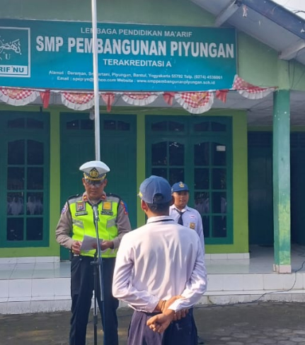 Polsek Sewon Edukasi Keselamatan Lalu Lintas di SMP Negeri 3 Sewon Melalui Upacara Bendera