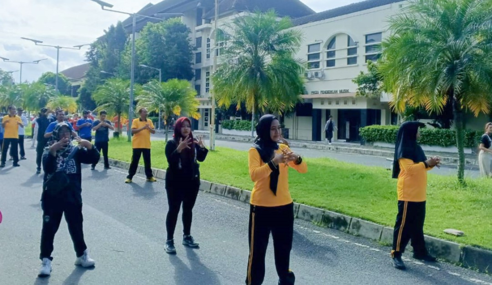 Polsek Sewon Ikut Senam Bersama Lintas Sektoral di Kampus ISI Yogyakarta