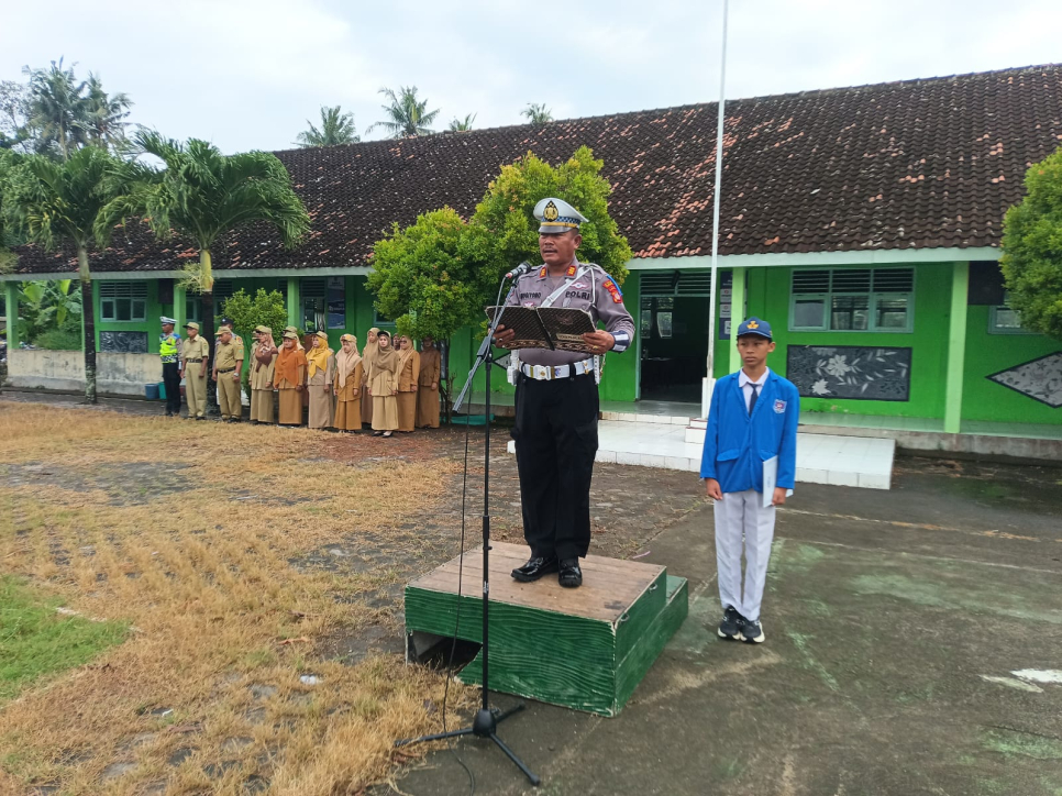Tanamkan Disiplin Sejak Dini, Kanit Lantas Polsek Kretek Pimpin Upacara di SMPN 1 Kretek