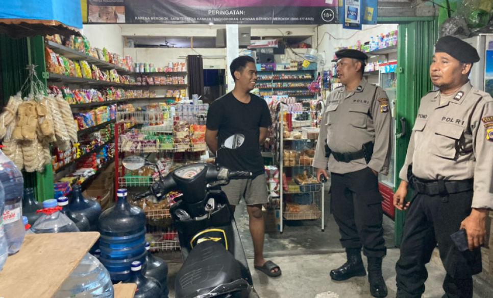 Pada kesempatan tersebut petugas berdialog dengan pemilik toko kelontong serta menyampaikan pesan-pesan kamtibmas.