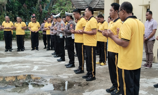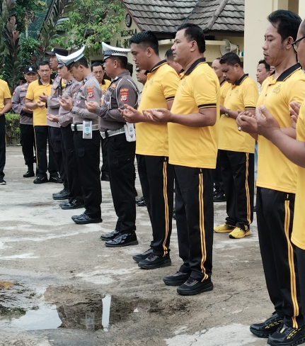 Kapolsek AKP Jumadi SH bersama anggotanya melaksanakan kegiatan Syawalan di halaman Mapolsek ...