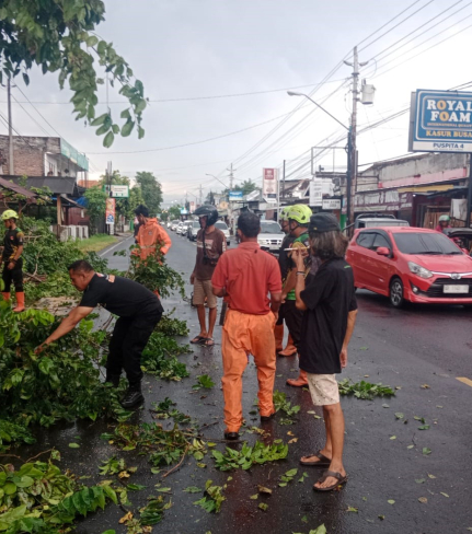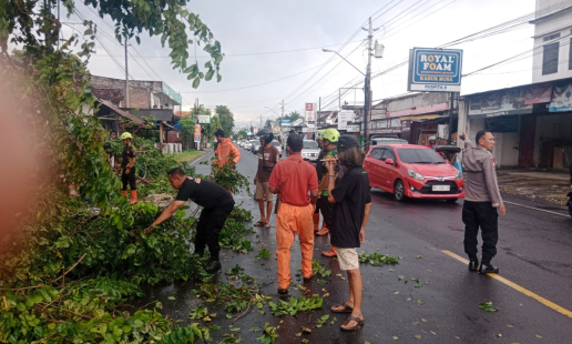 Sebuah pohon jenis Sono Kapuk milik Dinas Lingkungan Hidup Pemerintah Kabupaten Bantul tumbang ...