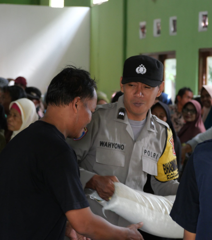 Bhabinkamtibmas Kalurahan Sriharjo, Aipda Wahyono SH, melakukan pemantauan penyaluran Bantuan ...