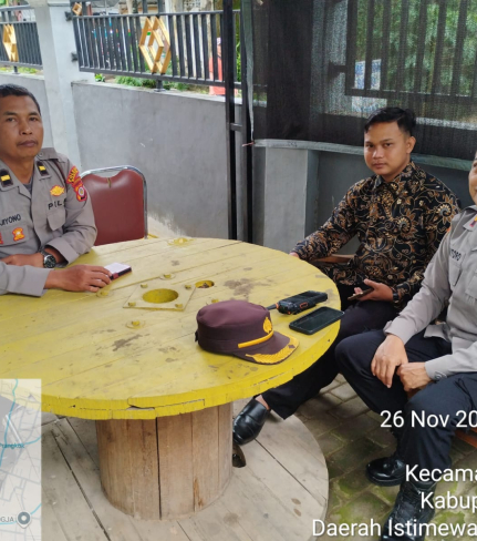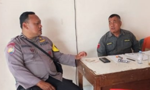 Bhabinkamtibmas Kalurahan Wirokerten, Aiptu Indra Prasetyo, melakukan koordinasi dengan Lurah ...