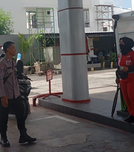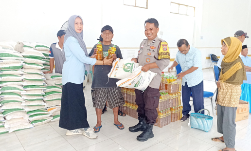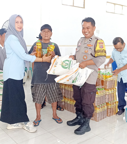 Bhabinkamtibmas Kalurahan Kebonagung, Aiptu Arri Sulistyo, melakukan pemantauan penyaluran ...