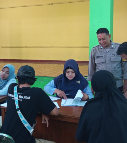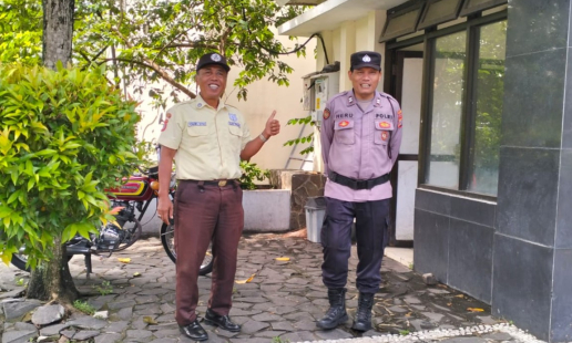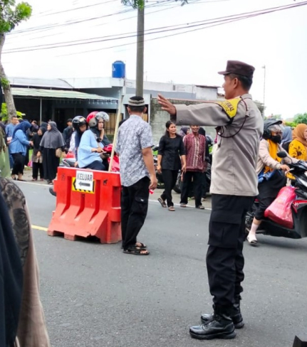 Bhabinkamtibmas Kelurahan Tirtomulyo, Aipda Suharyono, melaksanakan pengamanan kegiatan ...