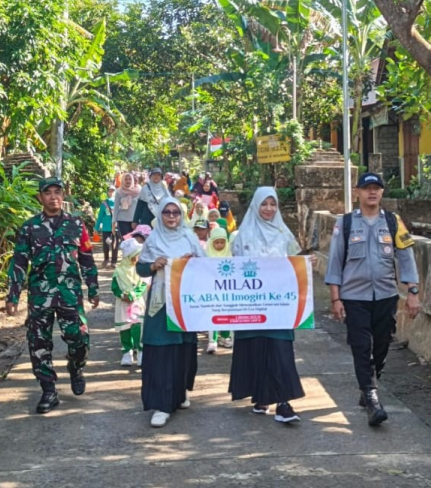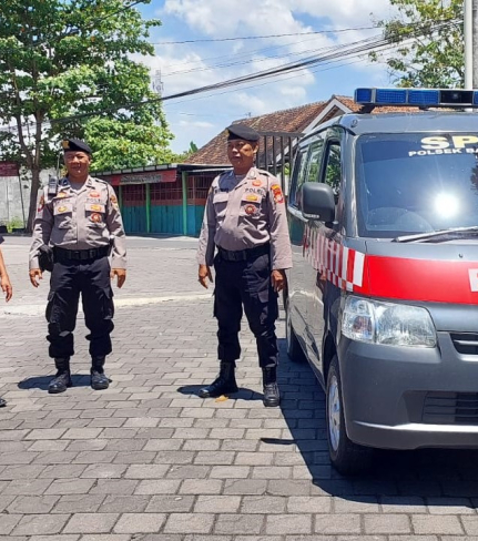 Bhabinkamtibmas Kalurahan Girirejo, Aiptu Toto Choirudin bersama Bhabinsa, mengawal acara Milad ...