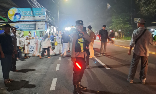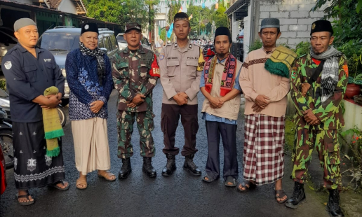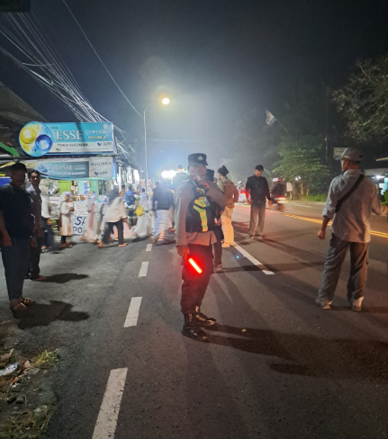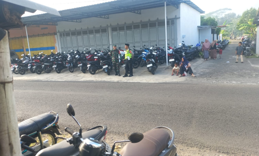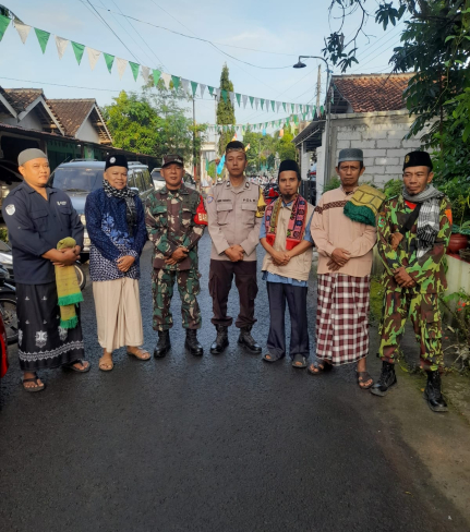 Anggota Pos Pengamanan (Pospam) Sedayu melaksanakan pengamanan kegiatan masyarakat berupa ...