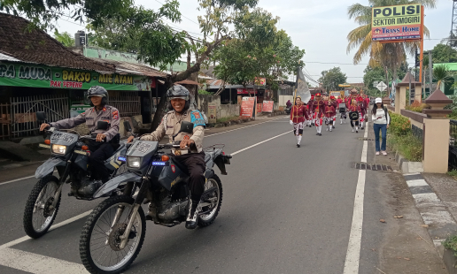 Personel Polsek Imogiri melaksanakan pengamanan kegiatan kirab budaya abdi dalem Kraton ...