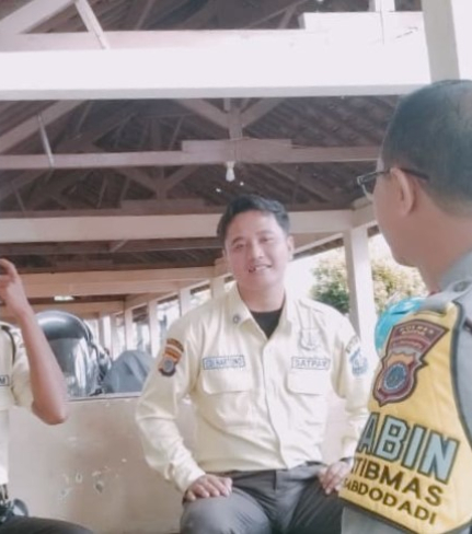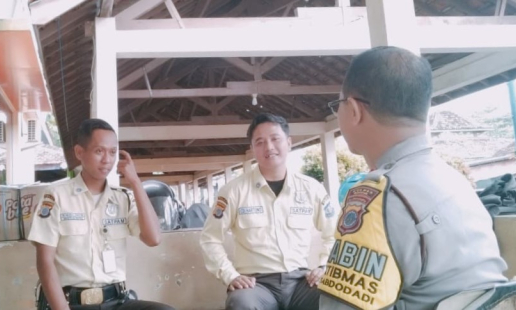 Bhabinkamtibmas Kalurahan Sabdodadi, Aiptu Moh. Riyadi, menyambangi SMK Negeri 1 Bantul, Selasa ...