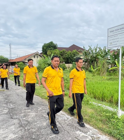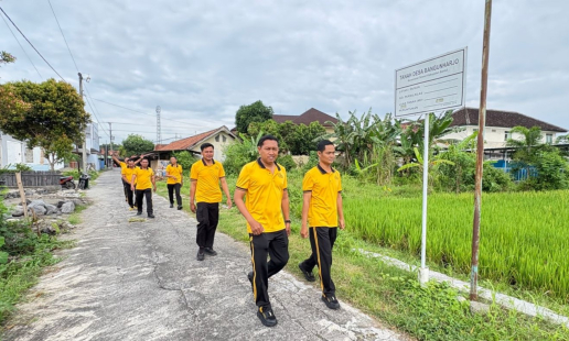 Anggota Polsek Sewon melaksanakan kegiatan olahraga jalan sehat sebagai bagian dari upaya ...