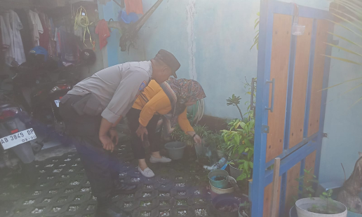 Bhabinkamtibmas Kalurahan Srimartani, Aiptu Anwar Yasin, melaksanakan kegiatan sambang dan ...