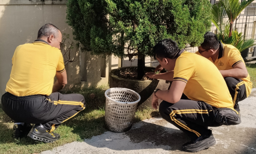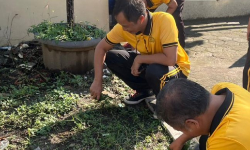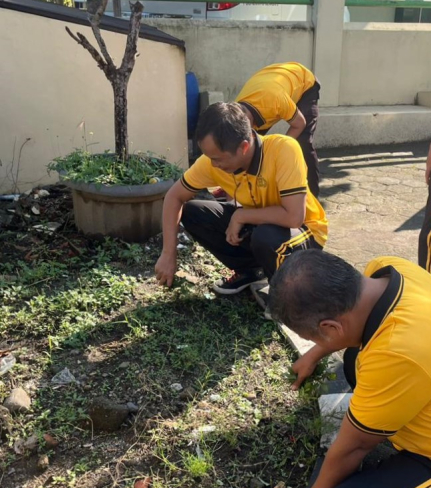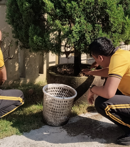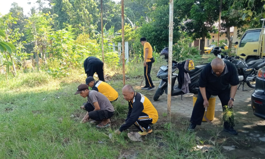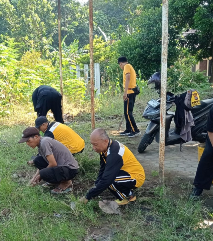 Guna menjaga kebersihan dan kenyamanan lingkungan kerja, personel Polsek Sewon melaksanakan ...