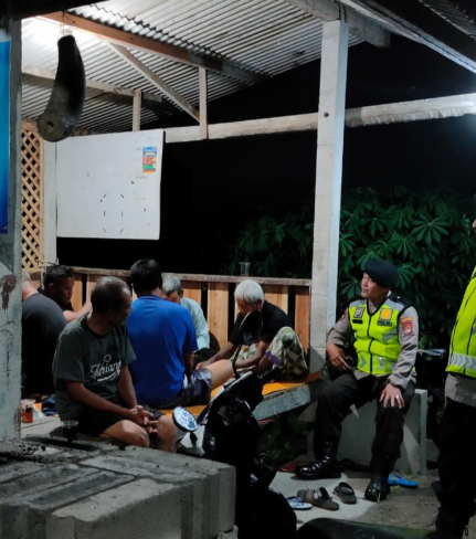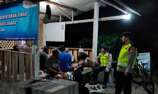Anggota Unit Samapta Polsek Piyungan melaksanakan patroli malam hari dengan menyambangi pos ...