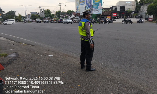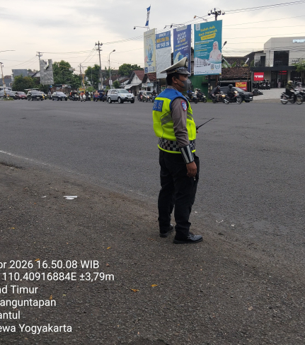 Anggota lalu lintas Pos Polisi (Pospol) Ketandan Polsek Banguntapan melaksanakan kegiatan pos ...