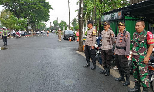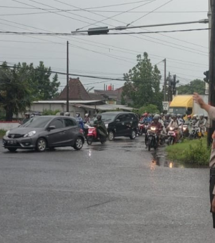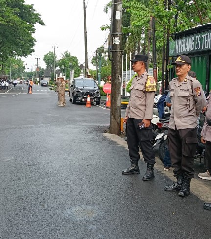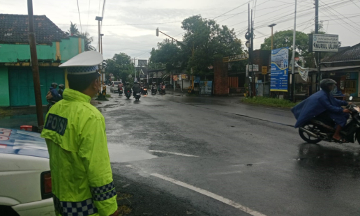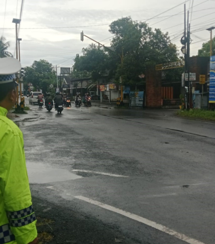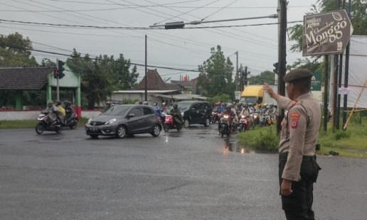 Personel Polsek Kretek melaksanakan kegiatan pos pagi dan pengaturan arus lalu lintas di ...