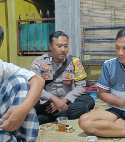 Bhabinkamtibmas Kelurahan Donotirto, Bripka Wahyu, melaksanakan kegiatan sambang pos kamling di ...
