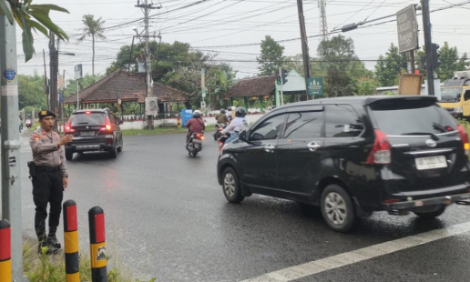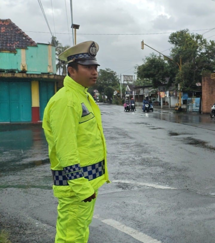 Personel Polsek Kretek melaksanakan kegiatan pos pagi dan pengaturan lalu lintas di wilayah ...