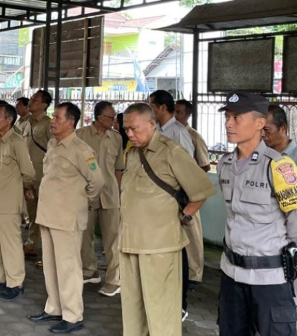 Bhabinkamtibmas Kalurahan Pendowoharjo, Aiptu Wawan Giyarto, menghadiri apel bersama Pamong di ...