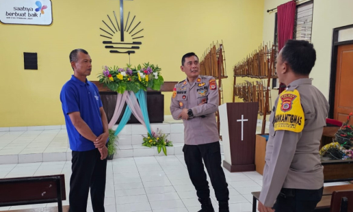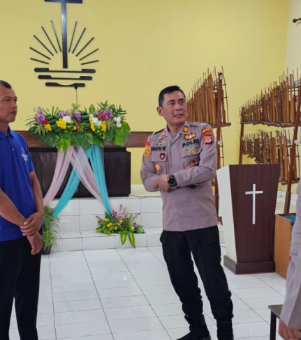 Kapolsek Kasihan AKP Bhayu Wijatmoko menyambangi Gereja Kerasulan Baru di Bangunjiwo, Kasihan, ...