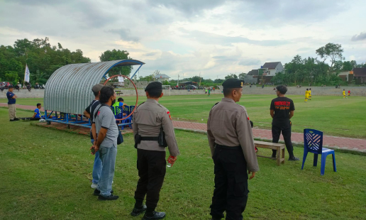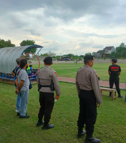 Personel Polsek Piyungan melaksanakan pengamanan ketat dalam lanjutan Kompetisi Sepakbola Liga ...