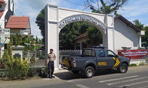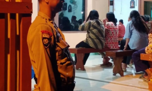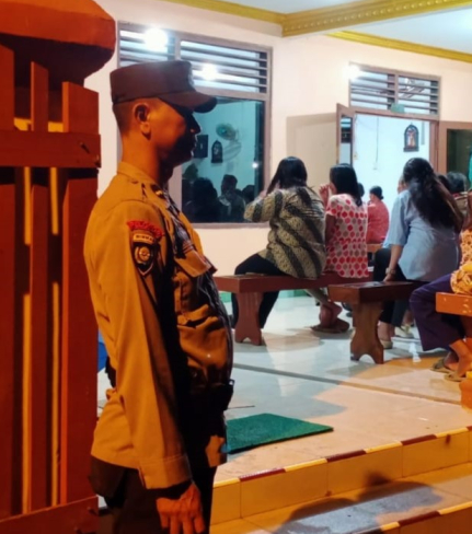 Bhabinkamtibmas Kalurahan Tirtohargo Aipda Tohari melaksanakan pengamanan kegiatan ibadah ...