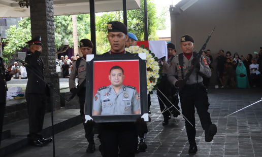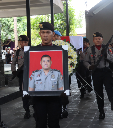 Jajaran Kepolisian Republik Indonesia memberikan penghormatan terakhir kepada salah satu ...