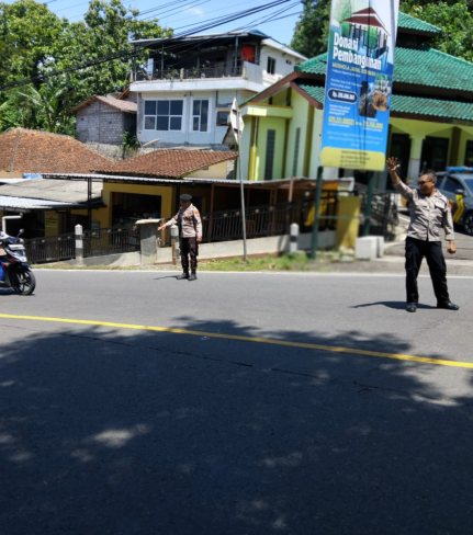 Anggota Unit Samapta Polsek Piyungan melaksanakan kegiatan pengamanan dan pengaturan lalu ...