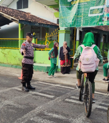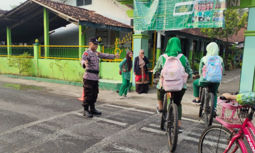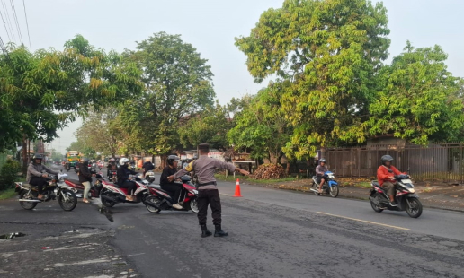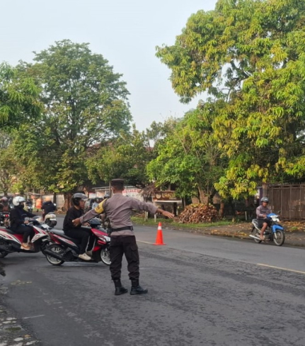 Personel Polsek Srandakan melaksanakan kegiatan pos pagi dengan fokus pada pengaturan lalu ...