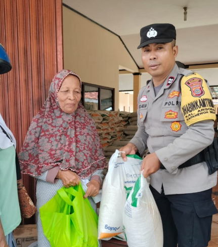 Bhabinkamtibmas Argosari Aiptu Agus Muslim melaksanakan pengamanan penyaluran Bantuan Cadangan ...
