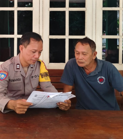 Bhabinkamtibmas Kalurahan Ngestiharjo, Aiptu Sumardi, melaksanakan kegiatan sambang dan ...